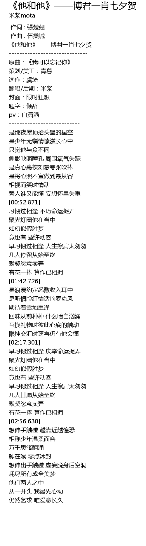 | [00:01.002] | 《他和他》——博君一肖七夕贺 |