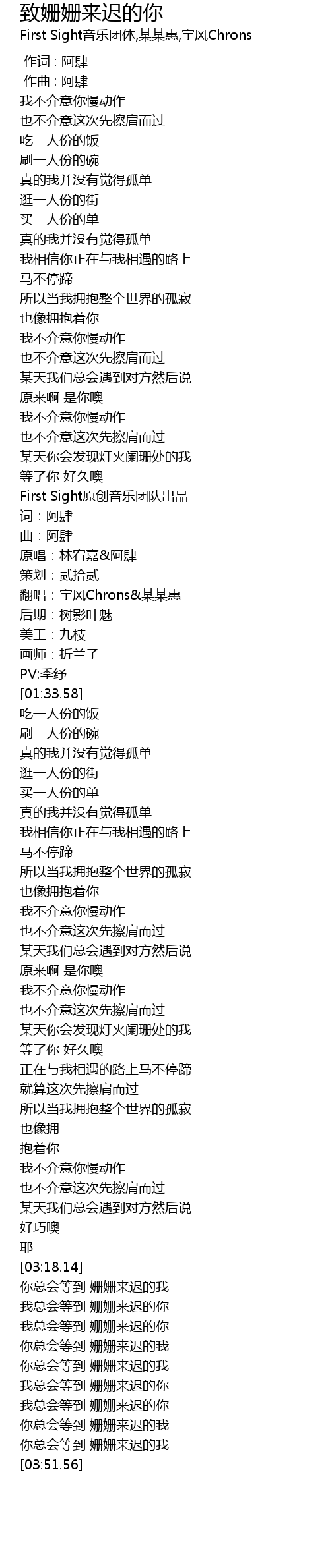 | [03:51.330] | 你总会等到 姗姗来迟的我 |