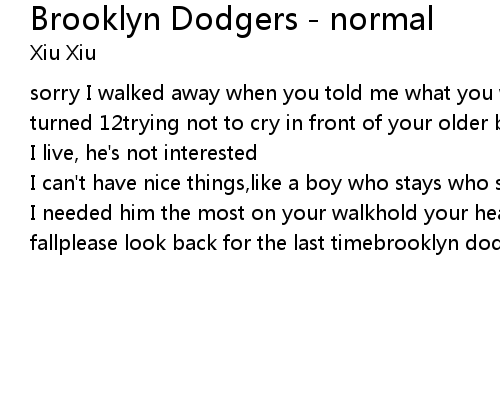 | I needed him the most on your walkhold your head up high and when you watch me fallplease look back for the last timebrooklyn dodger |