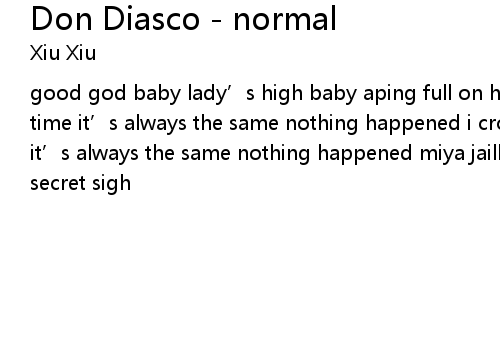 | good god baby lady' s high baby aping full on high i cross my heart all the time it' s always the same nothing happened i cross my wrist now you shut up it' s always the same nothing happened miya jailbird softy sigh miya who cried secret sigh |