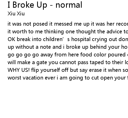 | OK break into children' s hospital crying out don' t fuck with me and i broke up without a note and i broke up behind your house and i broke up it sss a mess go go go go away from here food color poured out over her shorts mixed with i will make a gate you cannot pass taped to their loin cloth a sign that says | |