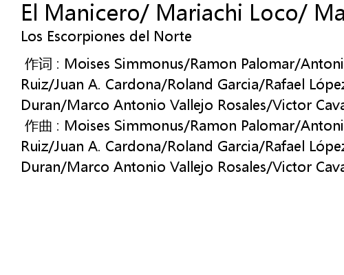 | [00:00.00-1] | 作词 : Moises Simmonus/Ramon Palomar/Antonio Romero Monge/Rafael Ruiz/Juan A. Cardona/Roland Garcia/Rafael López Ruíz/Joaquin Betín/A. Duran/Marco Antonio Vallejo Rosales/Victor Cavally |