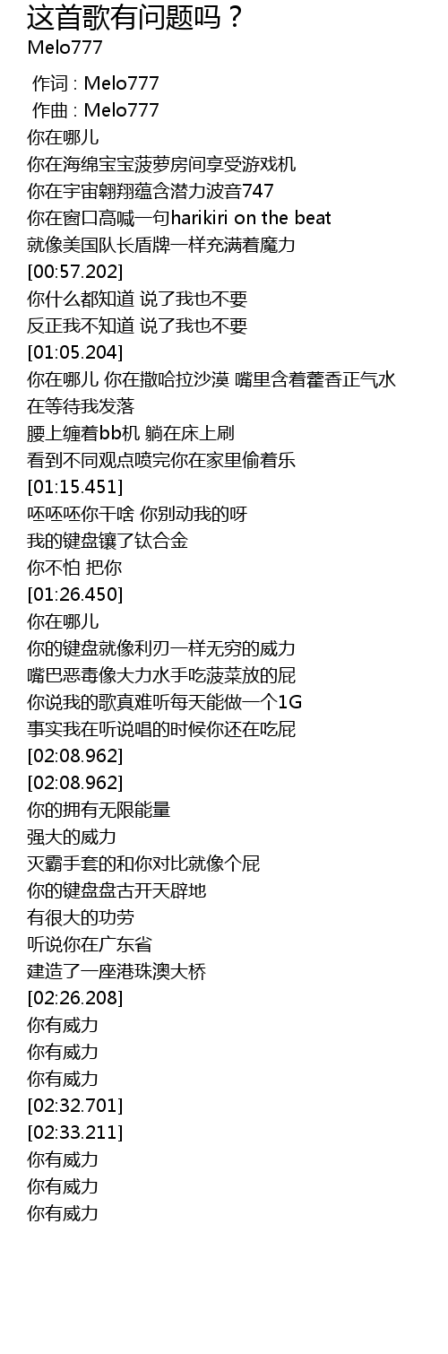 | [02:06.458] | 你说我的歌真难听每天能做一个1G |
