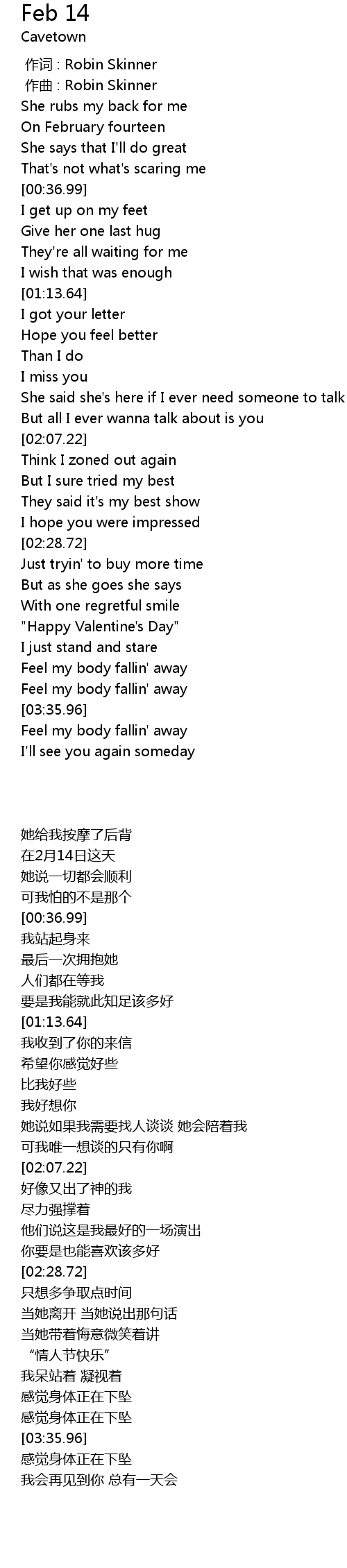 | [03:01.27] | " Happy Valentine' s Day" |