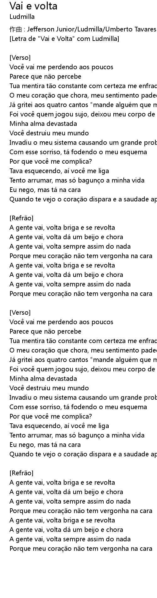 | Letra de " Vai e Volta" com Ludmilla | |