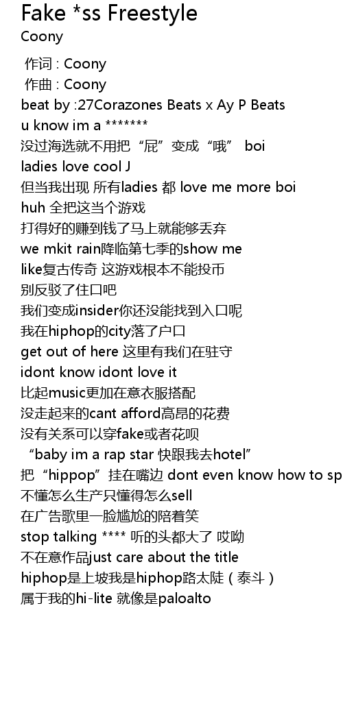 | [00:59.332] | 把“hippop”挂在嘴边 dont even know how to spell it |