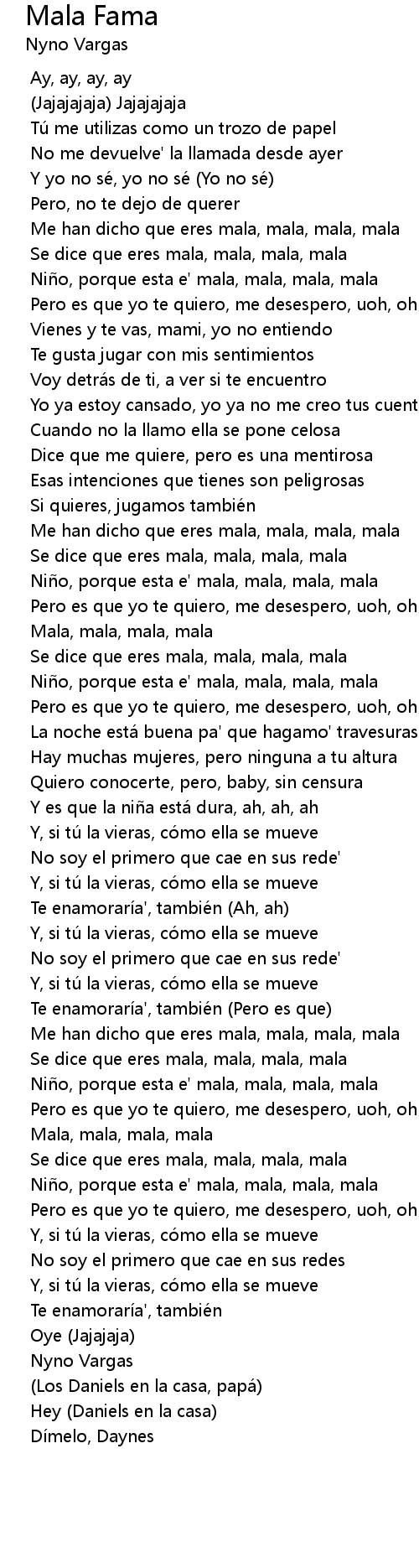 | [00:26.197] | Ni o, porque esta e' mala, mala, mala, mala |