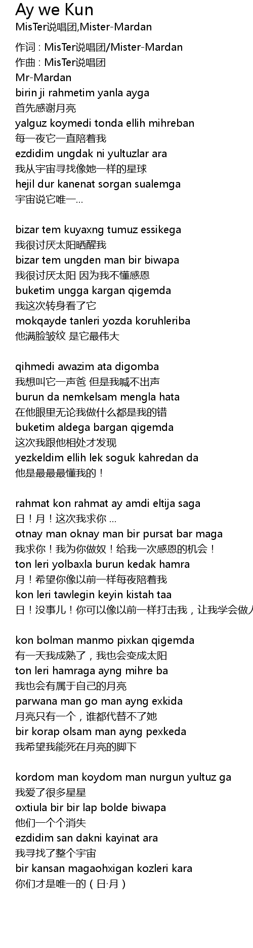 | 作词 : MisTer说唱团/Mister-Mardan | |