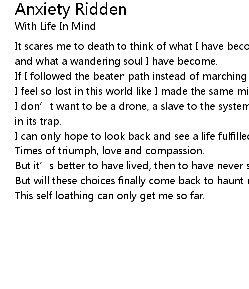 | Song | Anxiety Ridden |