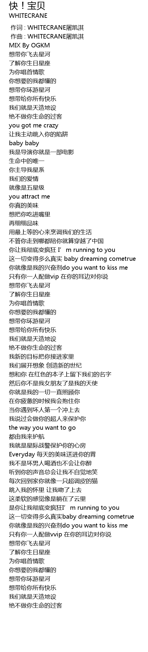 | [00:00.000] | 作词 : WHITECRANE屠凯淇 |