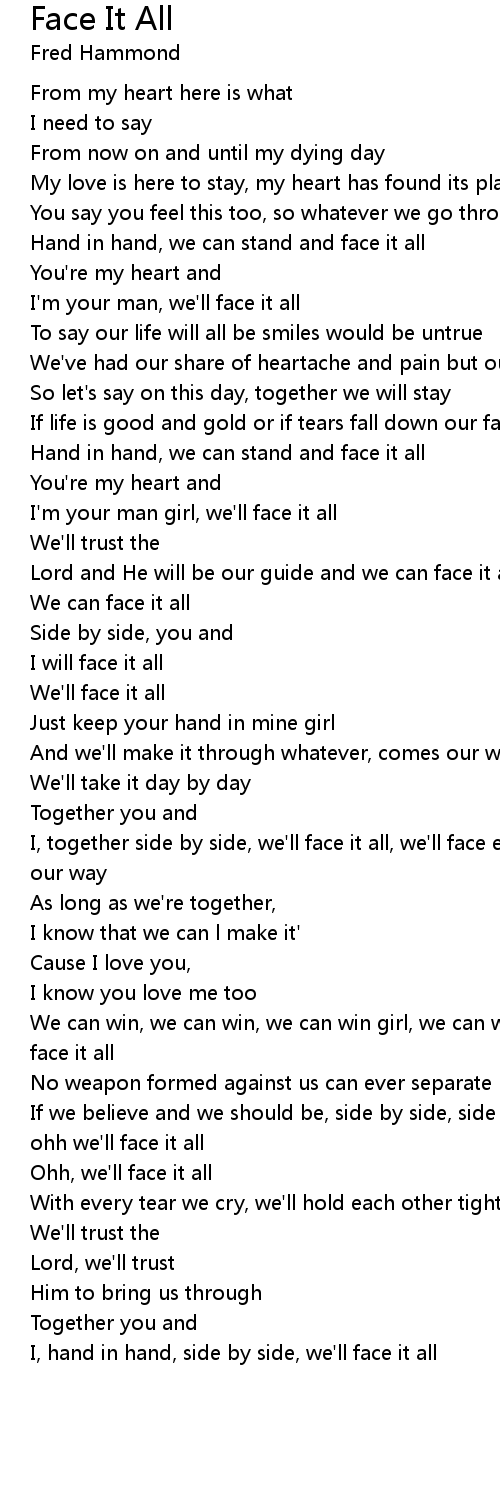 I, together side by side, we'll face it all, we'll face everything that comes our way