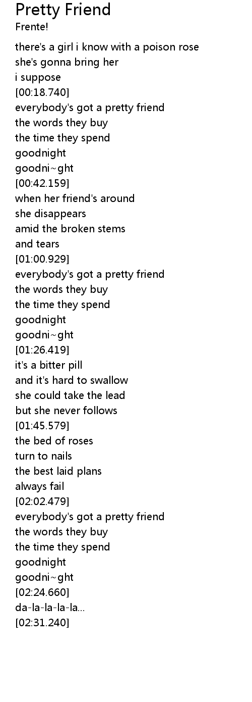 | [00:04.999] | there' s a girl i know with a poison rose |