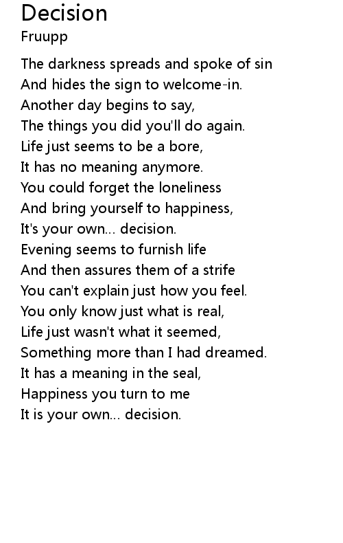 | It is your own… decision. |