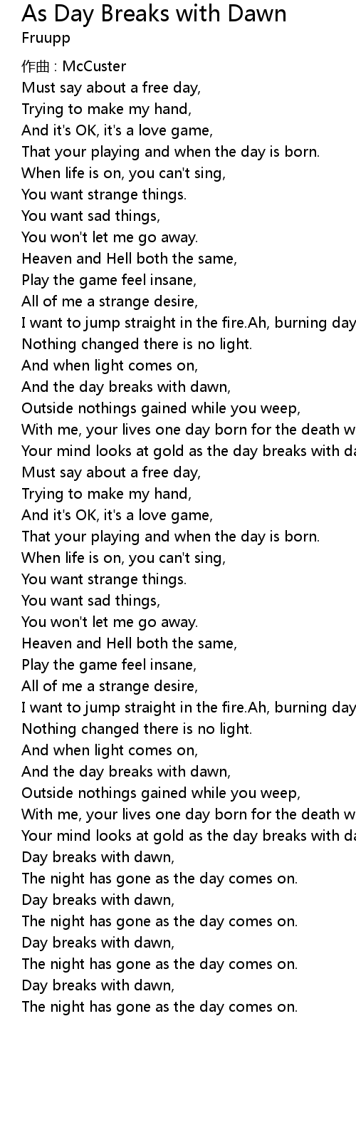 | I want to jump straight in the fire. Ah, burning days, burning nights, | |