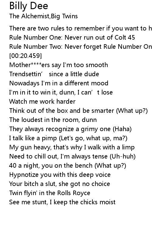 | [00:15.303] | Rule Number One: Never run out of Colt 45 |
