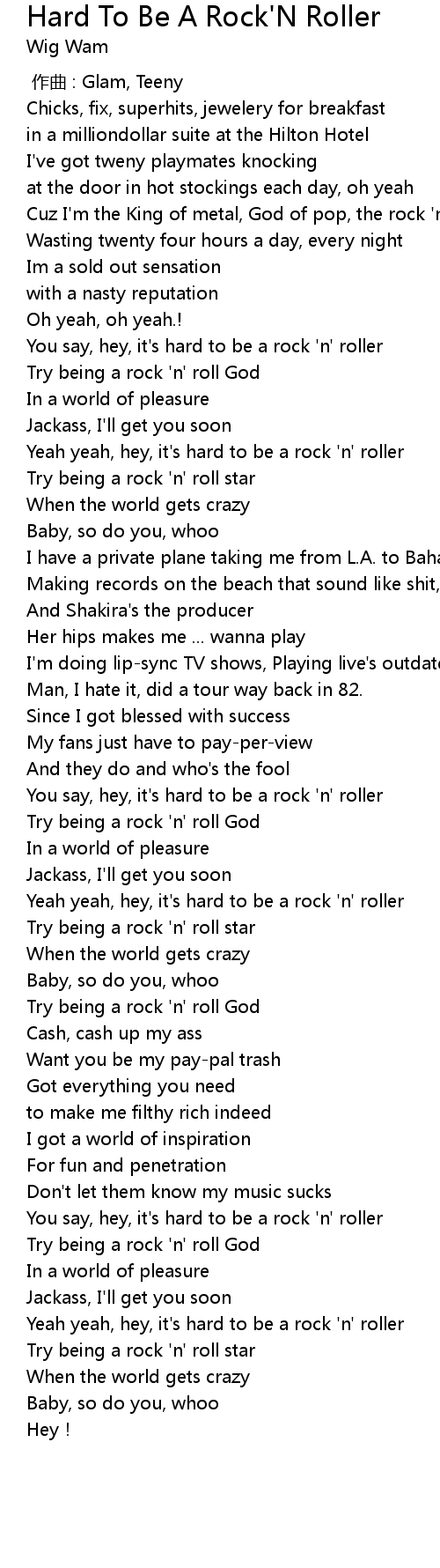 | [03:22.20] | Yeah yeah, hey, it' s hard to be a rock ' n' roller |