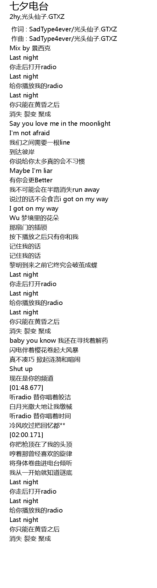 | [02:16.922] | gěi nǐ bō fàng wǒ de radio |