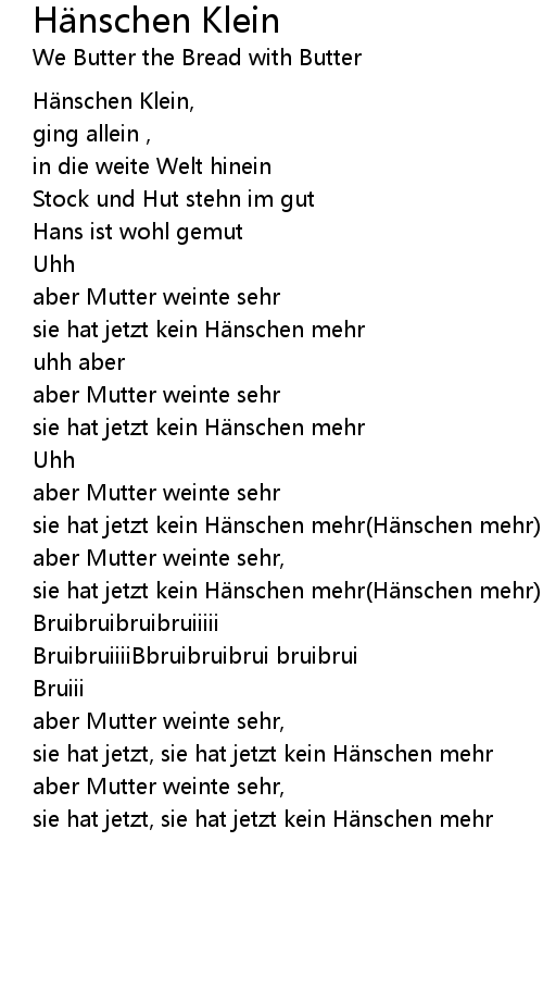 | sie hat jetzt kein Hänschen mehr(Hänschen mehr) | |
