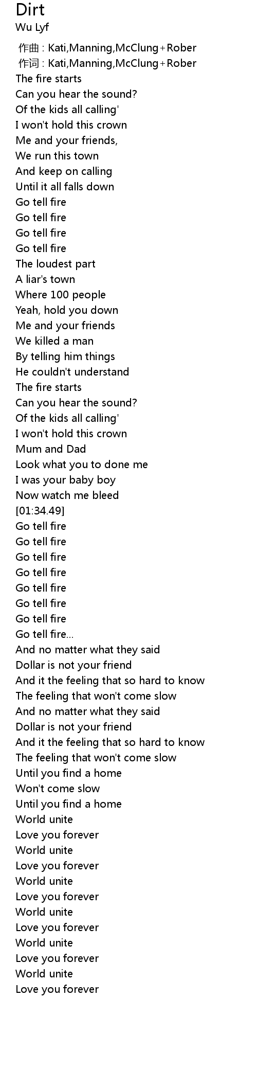 | [01:36.18] | Go tell fire |