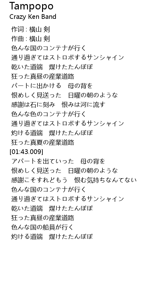 | [00:43.751] | 乾いた道端 煤けたたんぽぽ |