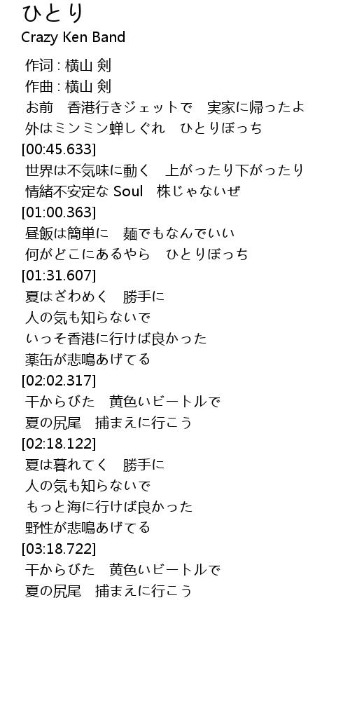 | [00:38.289] | 外はミンミン蝉しぐれ ひとりぼっち |