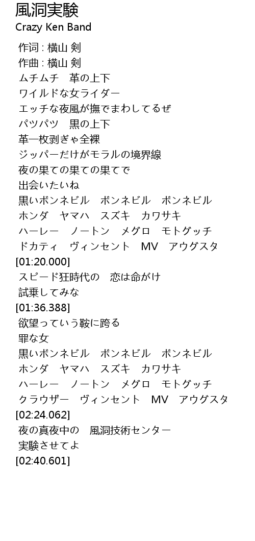 | [01:03.852] | 黒いボンネビル ボンネビル ボンネビル |
