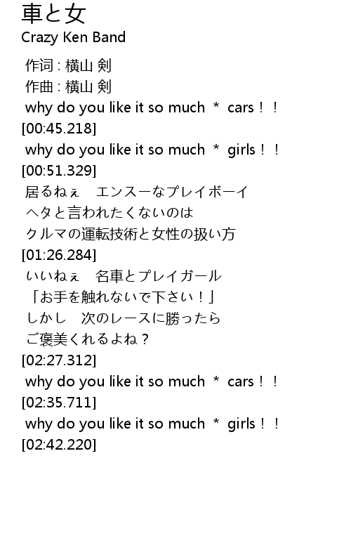 | [02:03.224] | いいねぇ 名車とプレイガール |