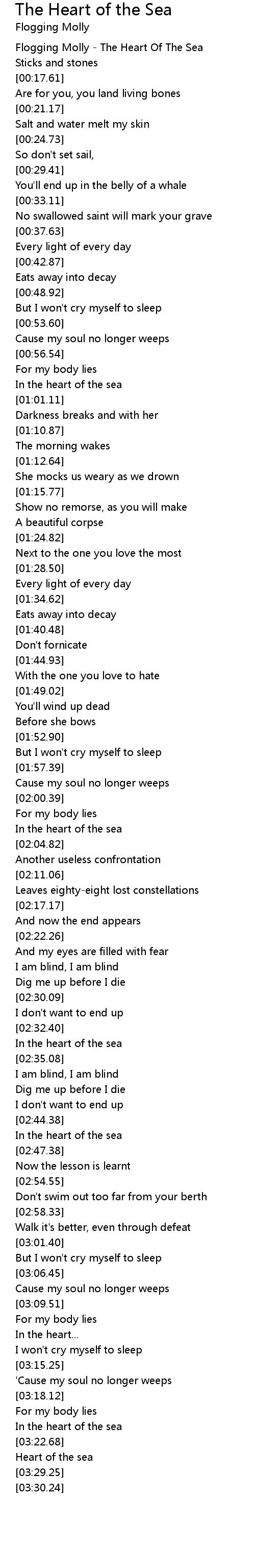 [00:00.45] Flogging Molly - The Heart Of The Sea