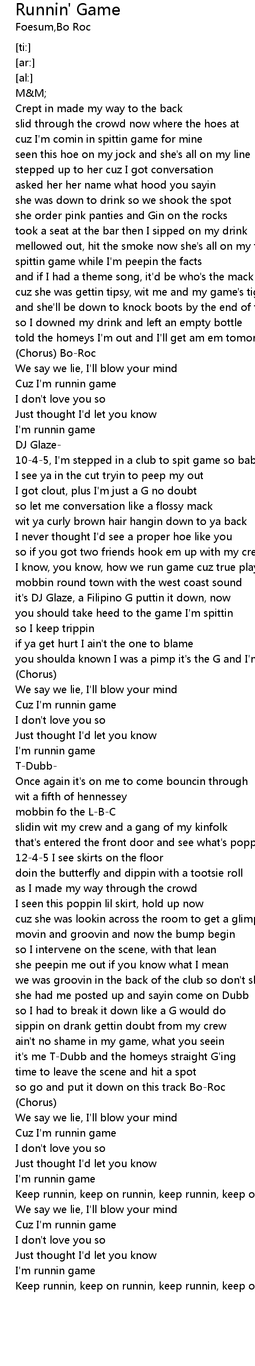 | [00:53.75] | Cuz I'm runnin game |