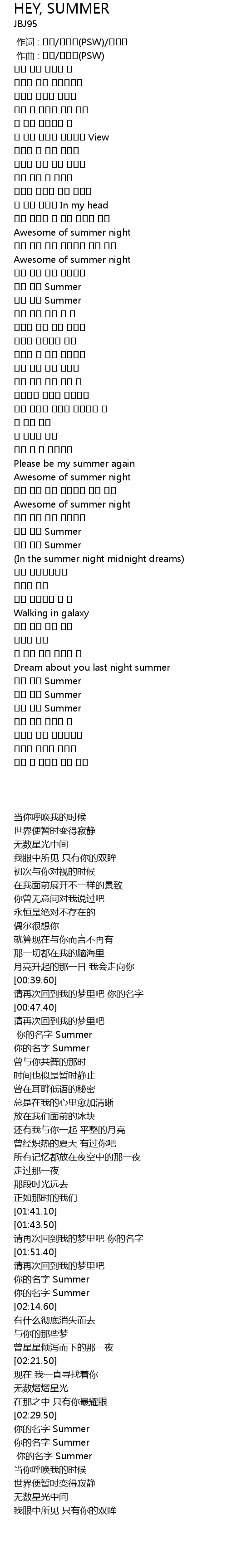 | [02:41.80] | 너의 이름 Summer |