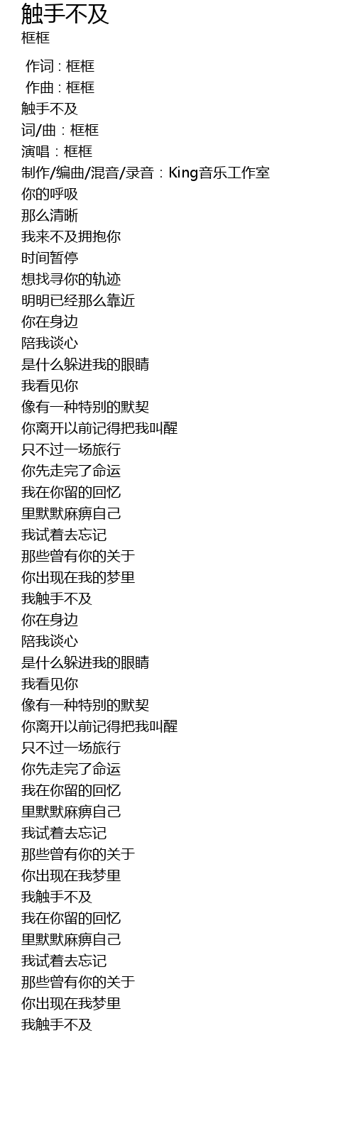 | [00:04.02] | 制作/编曲/混音/录音:King音乐工作室 |