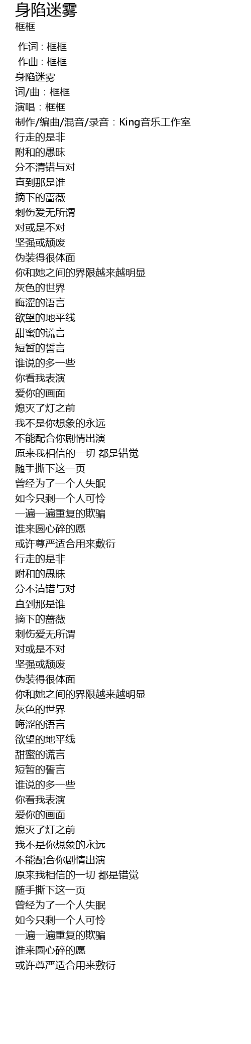 | [00:11.99] | 制作/编曲/混音/录音:King音乐工作室 |