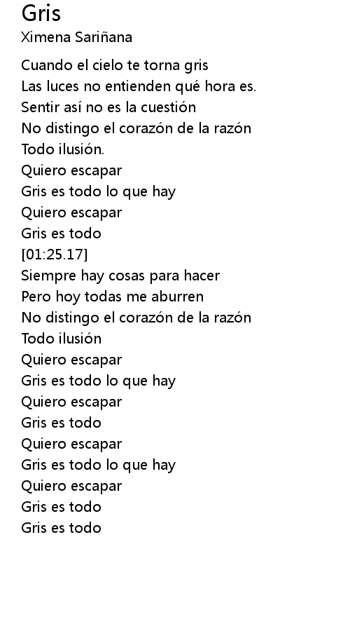 | [00:59.99] | Gris es todo lo que hay |