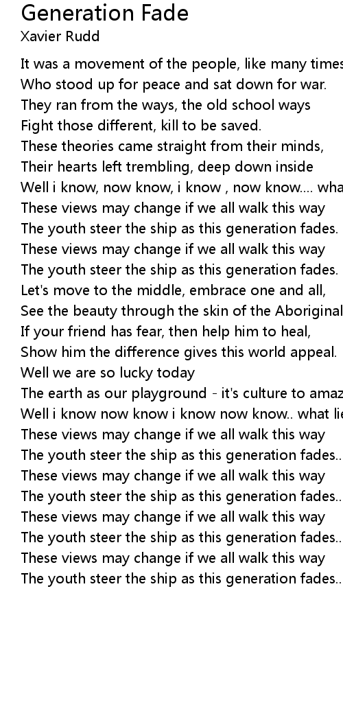 The youth steer the ship as this generation fades.. |
