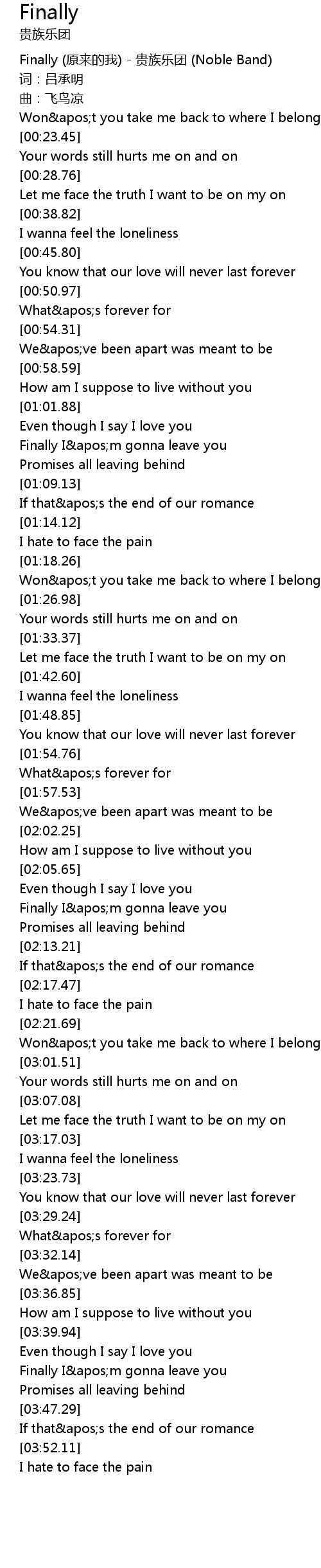 | [03:43.21] | Finally I'm gonna leave you |
