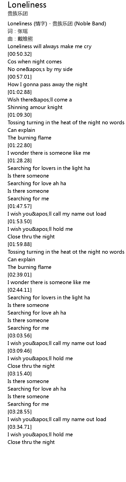 | [00:00.00] | Loneliness qíng zì guì zú yuè tuán Noble Band |