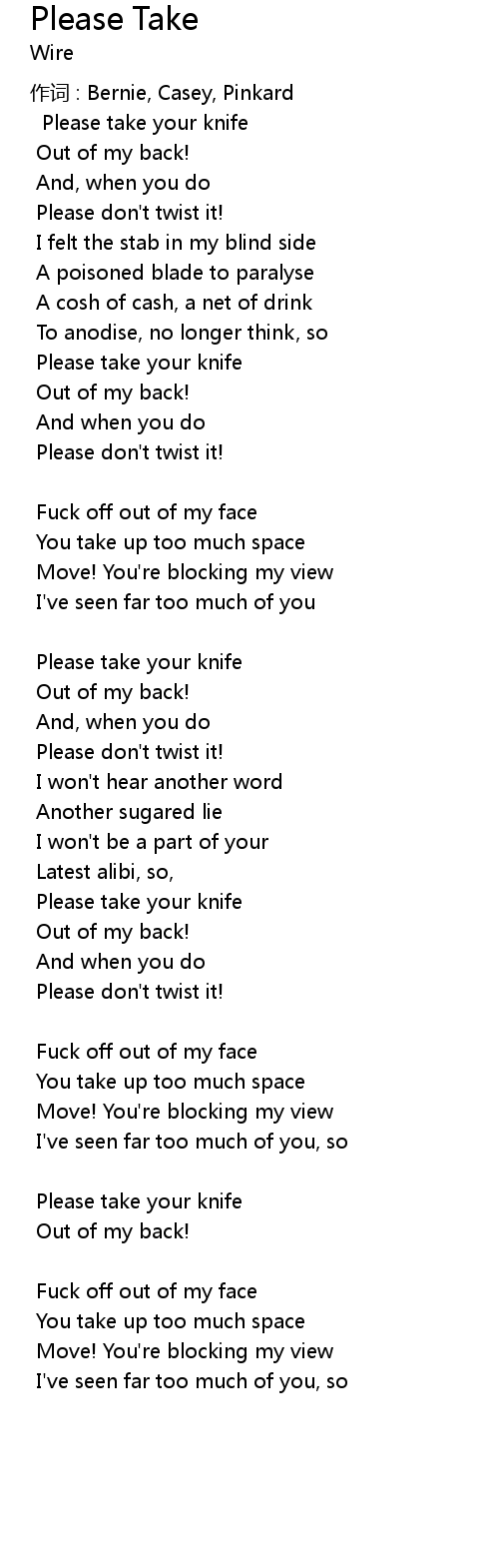 | Song | Please Take |