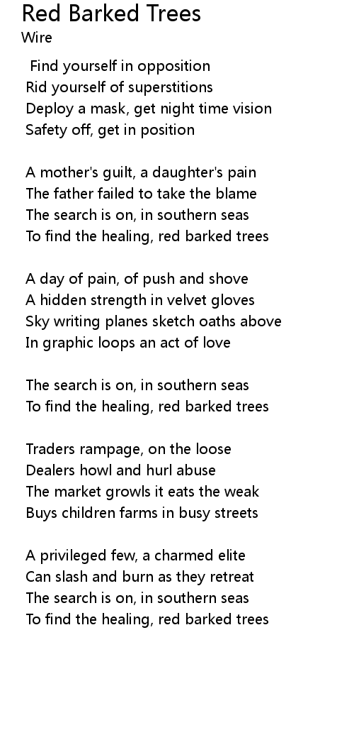 To find the healing, red barked trees |