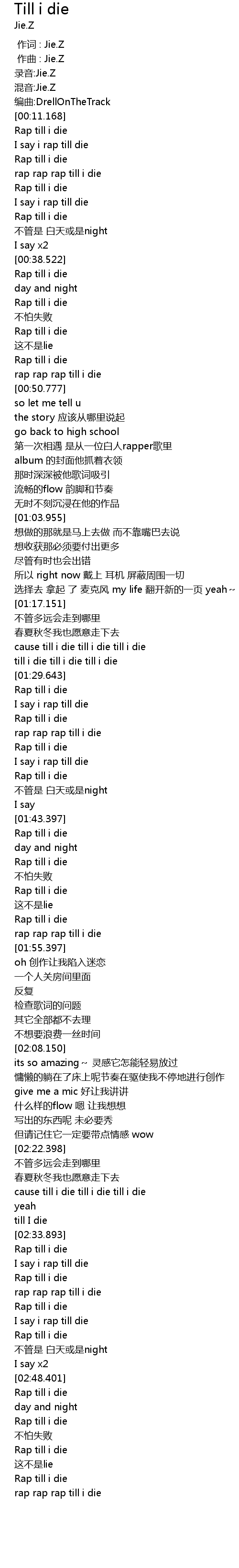 | [00:55.205] | di yi ci xiang yu shi cong yi wei bai ren rapper ge li |