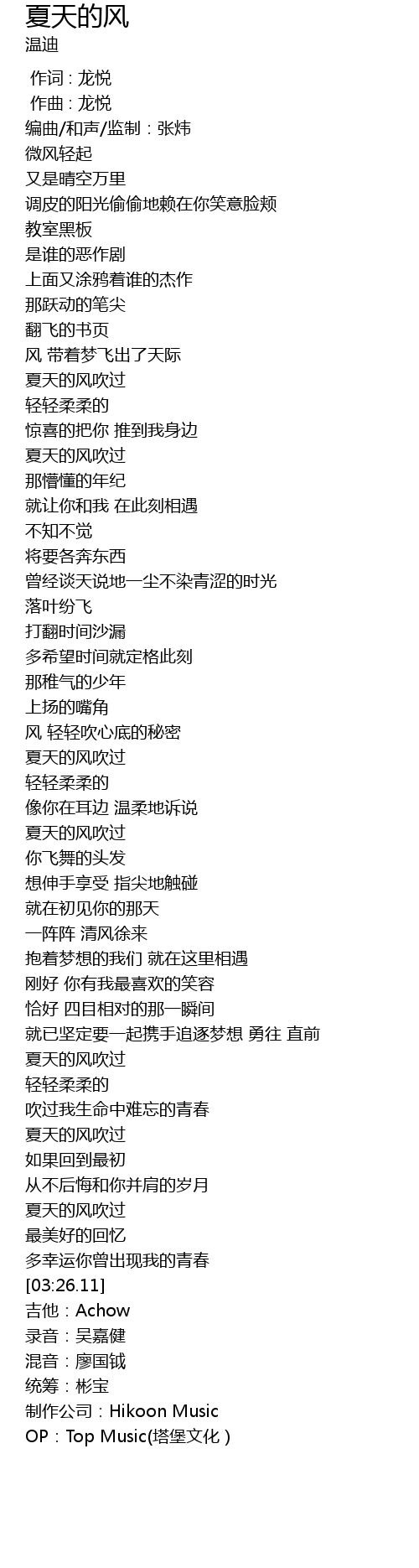 | [03:43.83] | OP:Top Music(塔堡文化) |