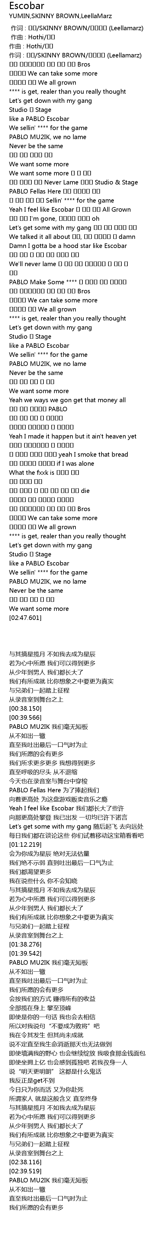 | [00:58.398] | Yeah I feel like Escobar All Grown |