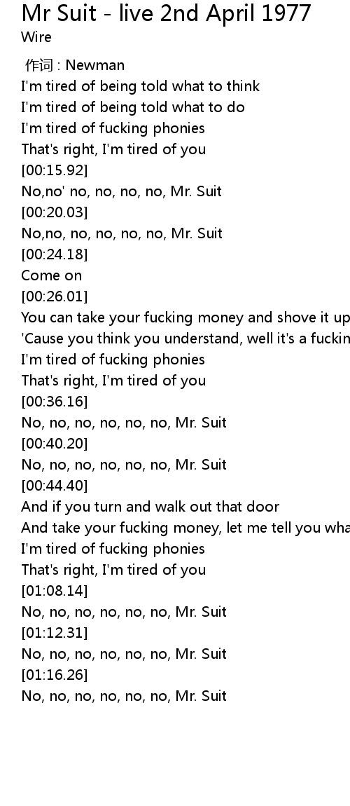 | [01:17.95] | No, no, no, no, no, no, Mr. Suit |