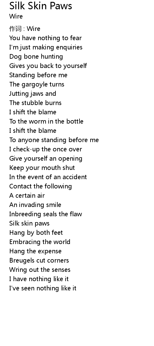 | Song | Silk Skin Paws |