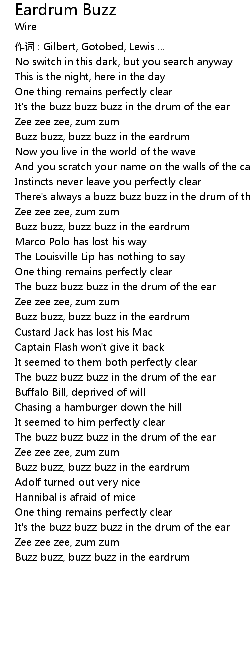 | There' s always a buzz buzz buzz in the drum of the ear | |
