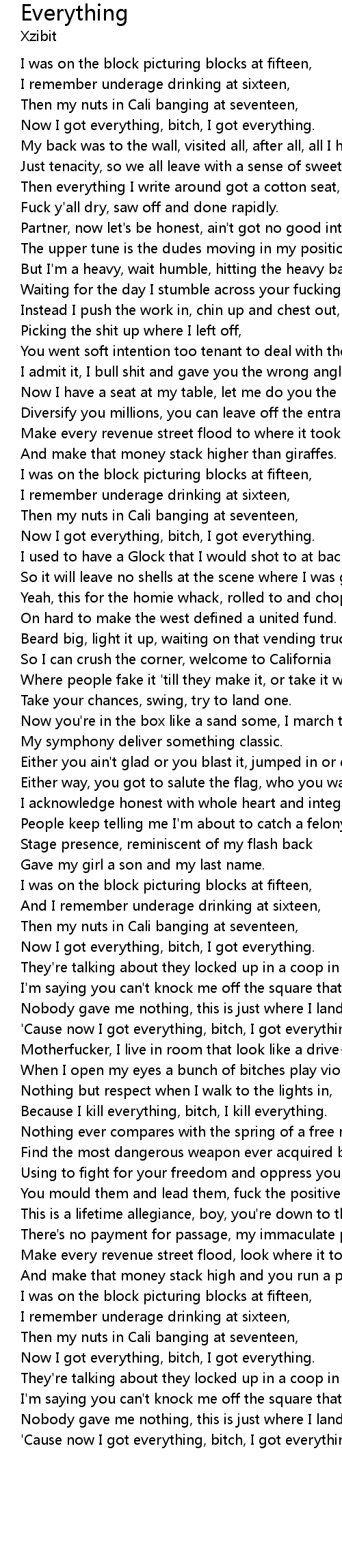 | 'Cause now I got everything, bitch, I got everything. | |
