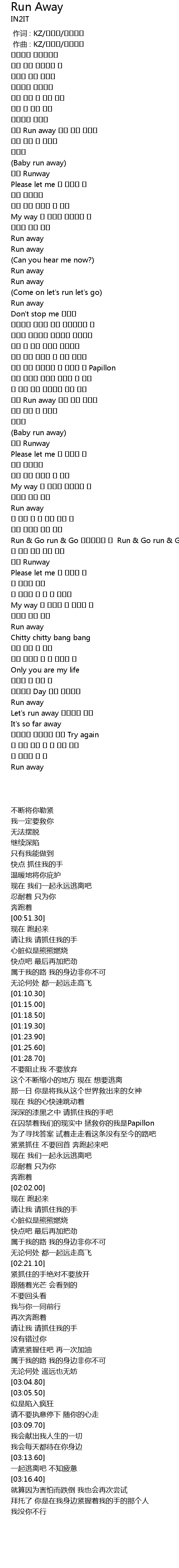 | [02:32.40] | Run & Go run & Go 뒤돌아보지 마 Run & Go run & Go |