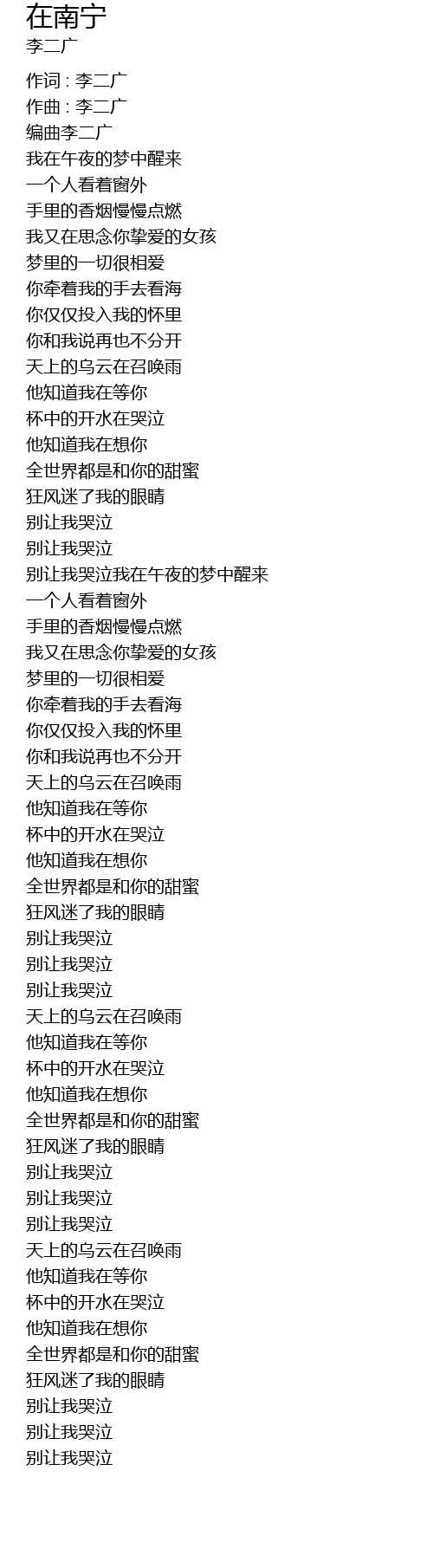 | 作词 : 李二广 | |