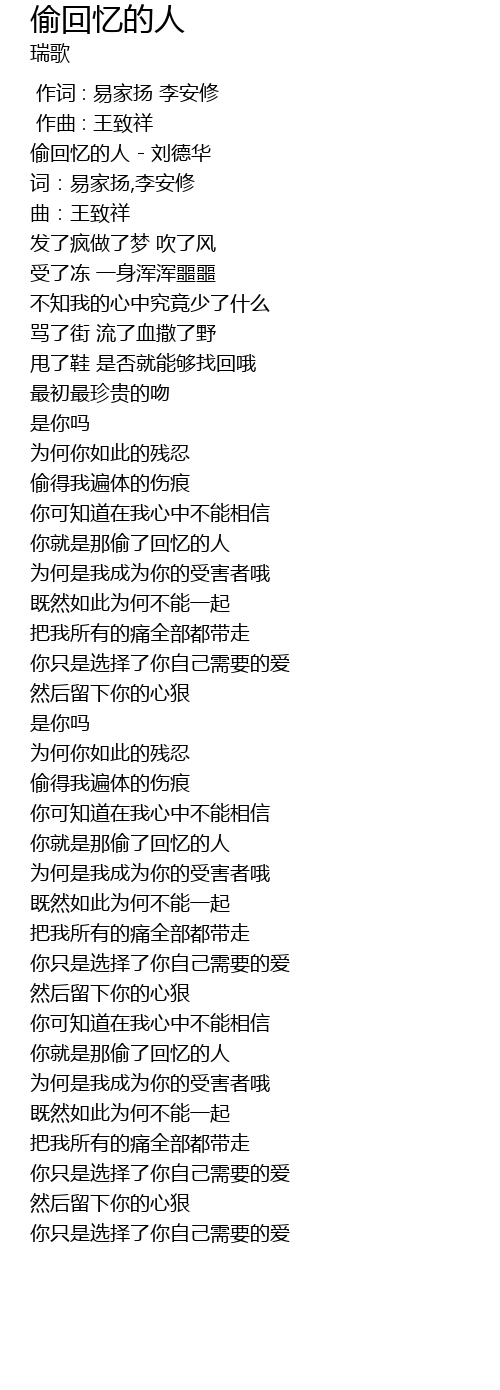 | [00:03.190] | 偷回忆的人 - 刘德华 |