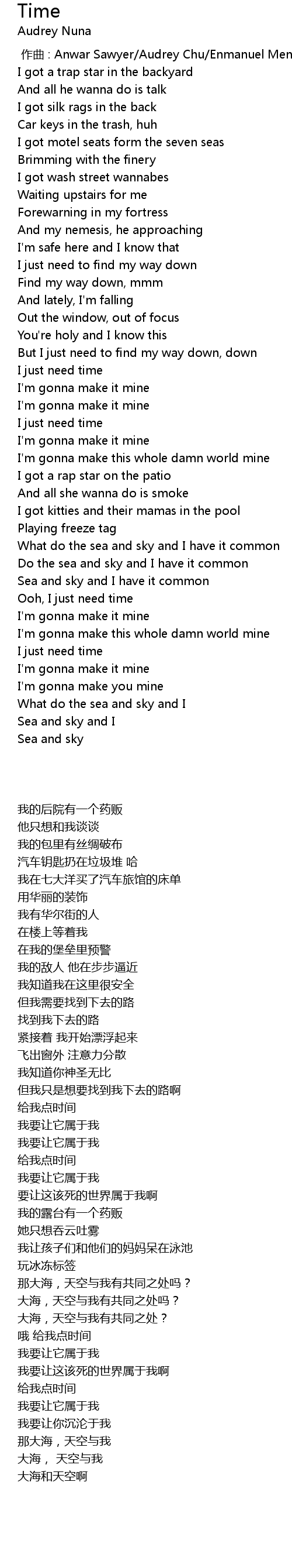 | [00:00.000] | 作曲 : Anwar Sawyer/Audrey Chu/Enmanuel Mendez |