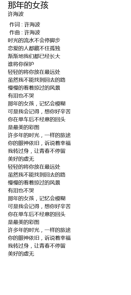 | [00:00.00] | 作词 : 许海波 |